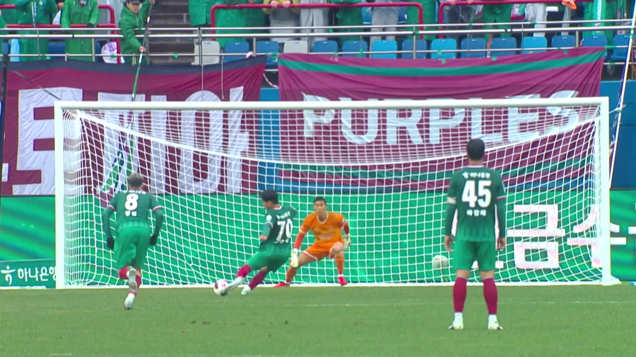 그러나 키커 김현욱의 슛은 안양 골키퍼 김정훈에게 막혔고, 결국 승점 1점을 잡는 데 그쳤습니다.