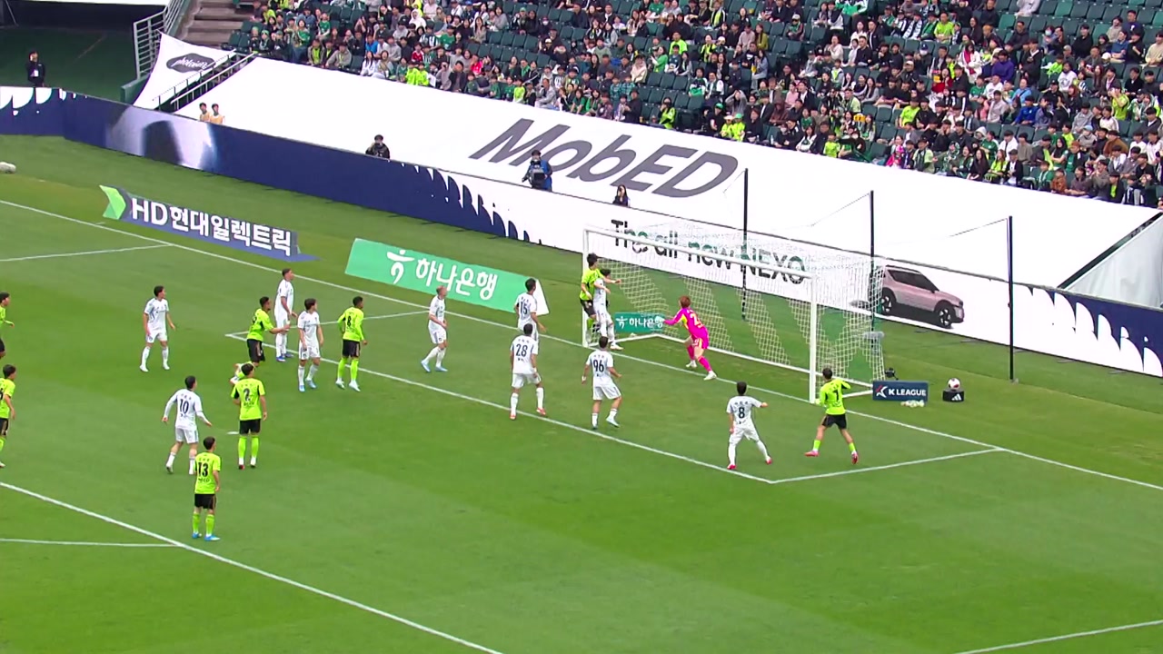전반 9분, 이동준이 코너킥을 떨궈주자 전북의 센터백 조위제가 쇄도하며 머리로 받아 넣습니다.