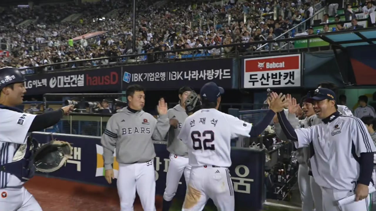안재석은 3루 선상을 타고 날아온 심재훈의 강한 타구를 다이빙캐치로 잡아내 이닝을 깔끔하게 마무리했습니다.