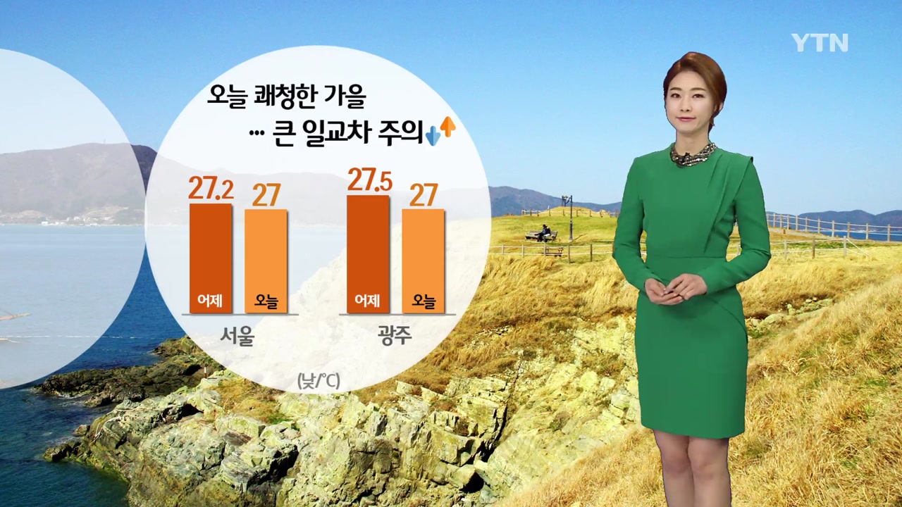 아침은 쌀쌀하게 시작하지만, 낮 동안 서울과 광주 27도로 어제만큼 기온이 오르겠습니다.
