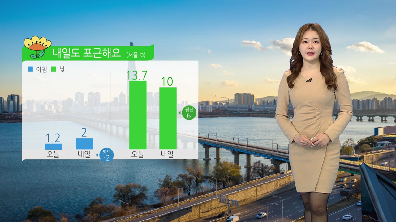 낮 동안 기온이 10도를 웃돌며 포근하겠습니다.