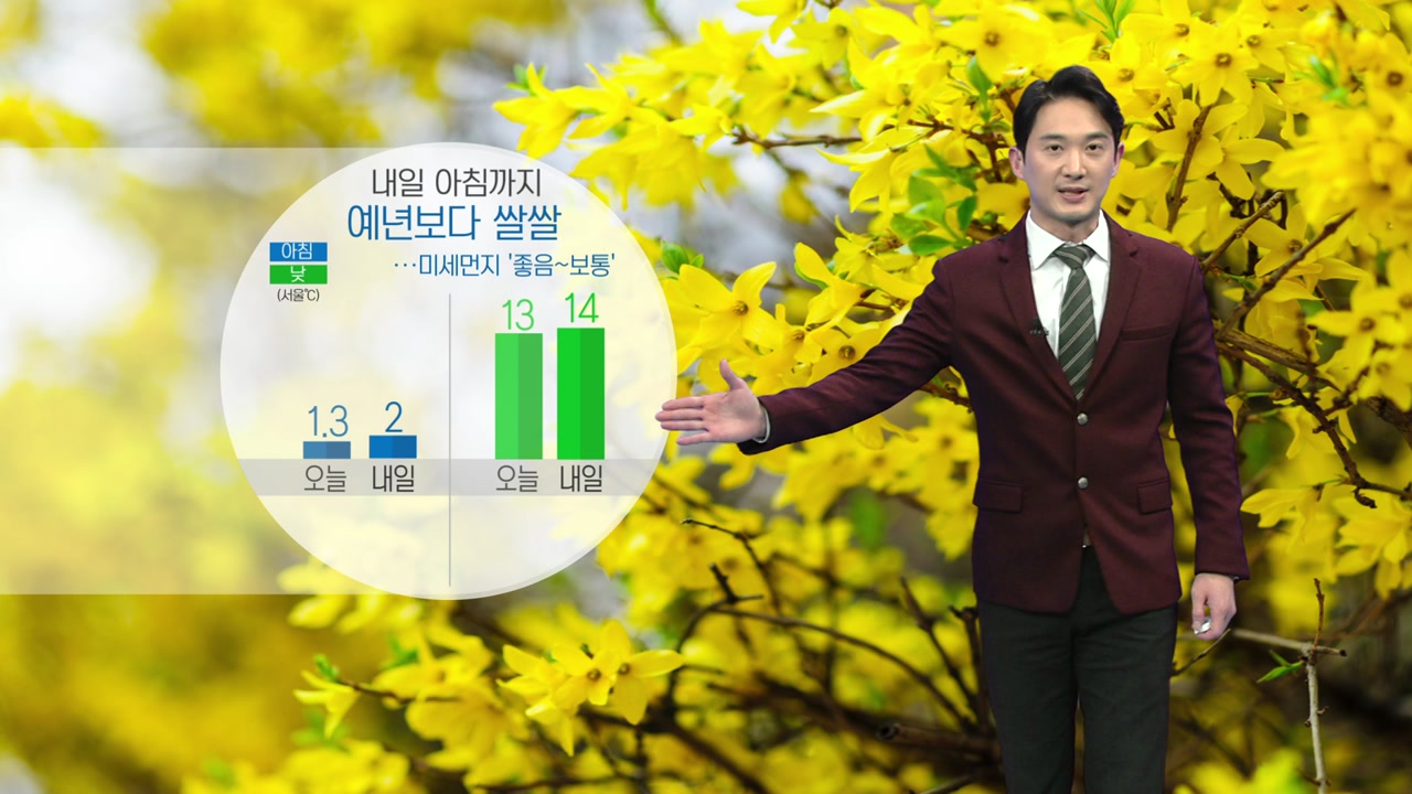 또 내일 서울 아침 기온이 2도로 아침에는 예년보다 3도가량 낮아 꽤 쌀쌀하겠지만 낮 기온은 14도까지 오르면서 예년 수준과 비슷해지겠습니다.