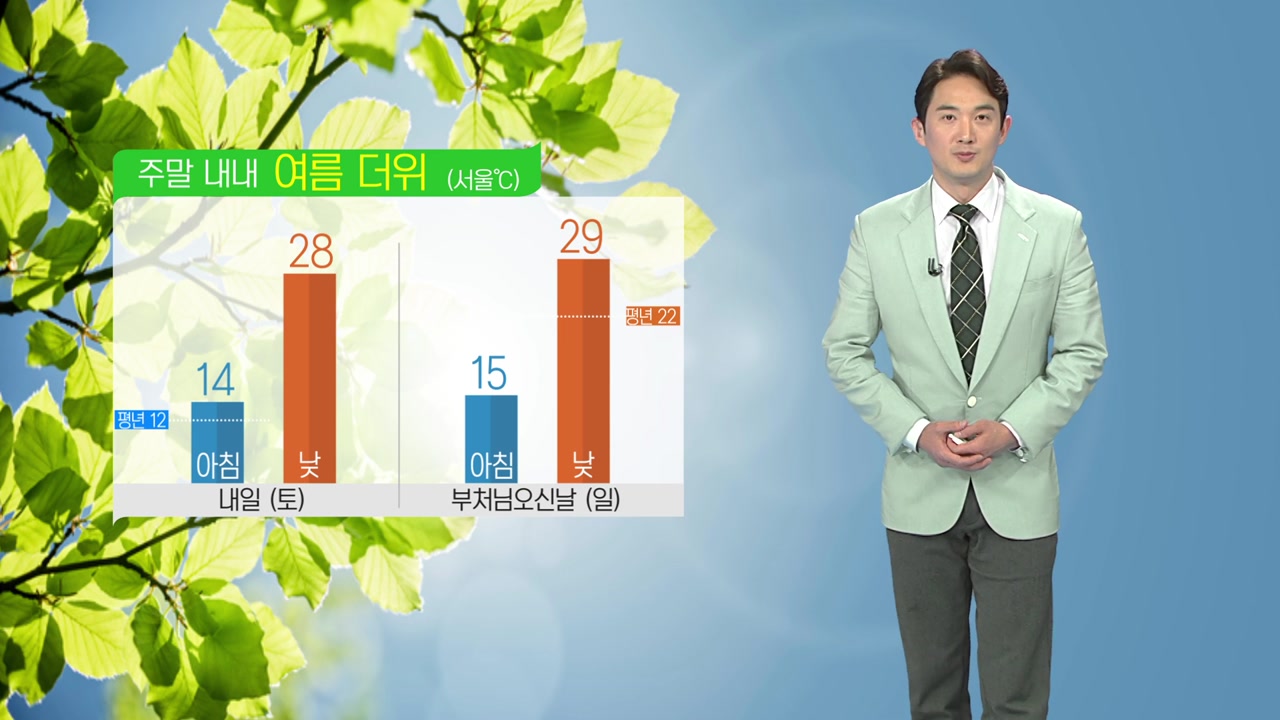 주말과 휴일 기온이 점점 오르면서 한여름 같은 날씨가 찾아오겠습니다.