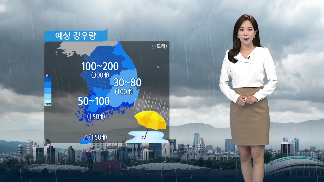 또 제주 산간과 남해안에도 150mm 이상, 또 영동과 호남, 영남지역에도 최고 100mm가량의 많은 비가 오겠습니다.