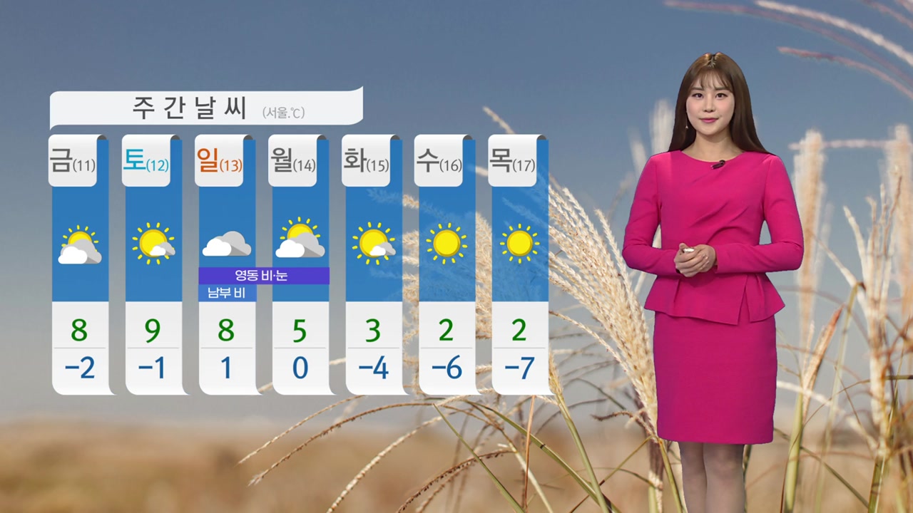 서울 7도, 광주 10도, 부산 12도로 예상됩니다.