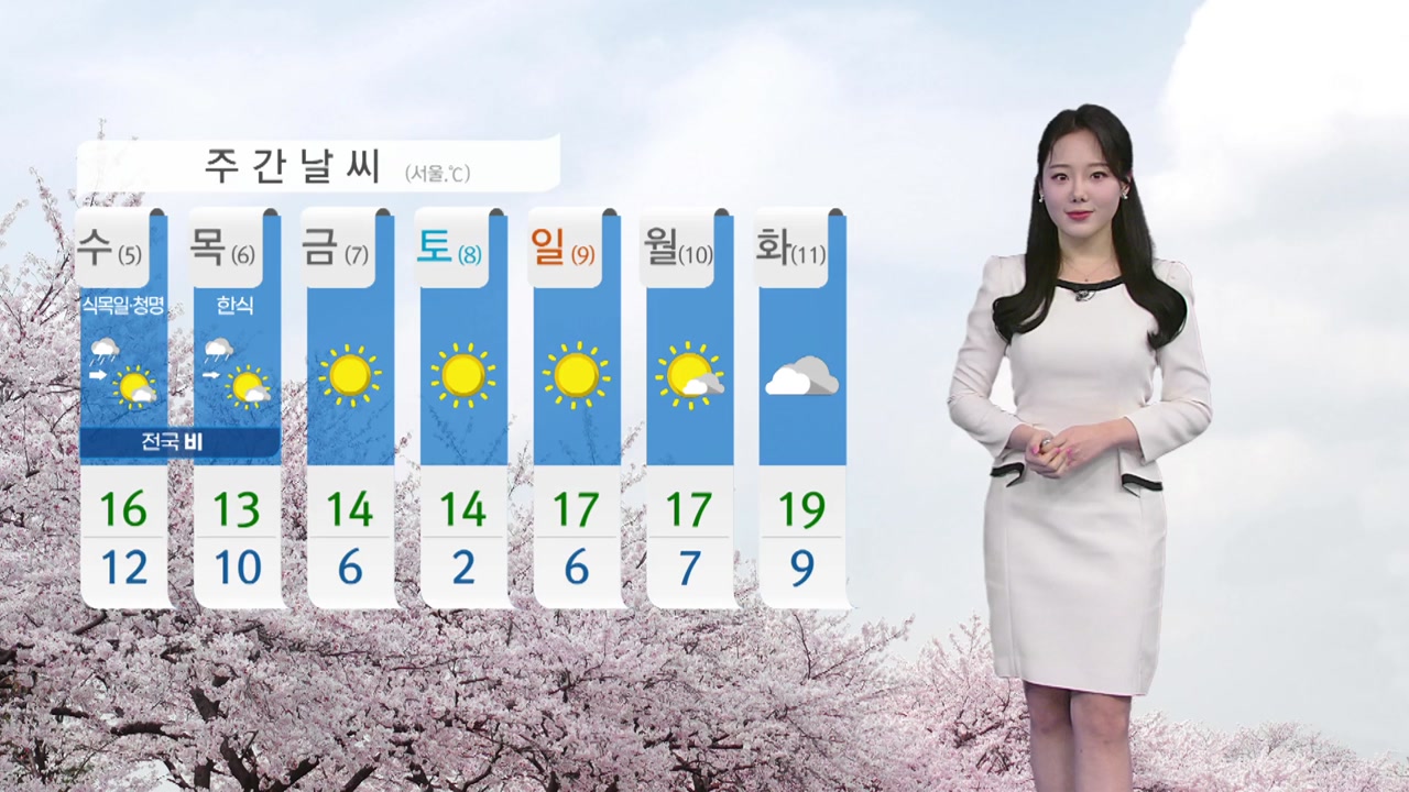 오늘 낮 기온 서울 22도, 대전과 대구도 22도, 광주는 21도가 예상됩니다.
