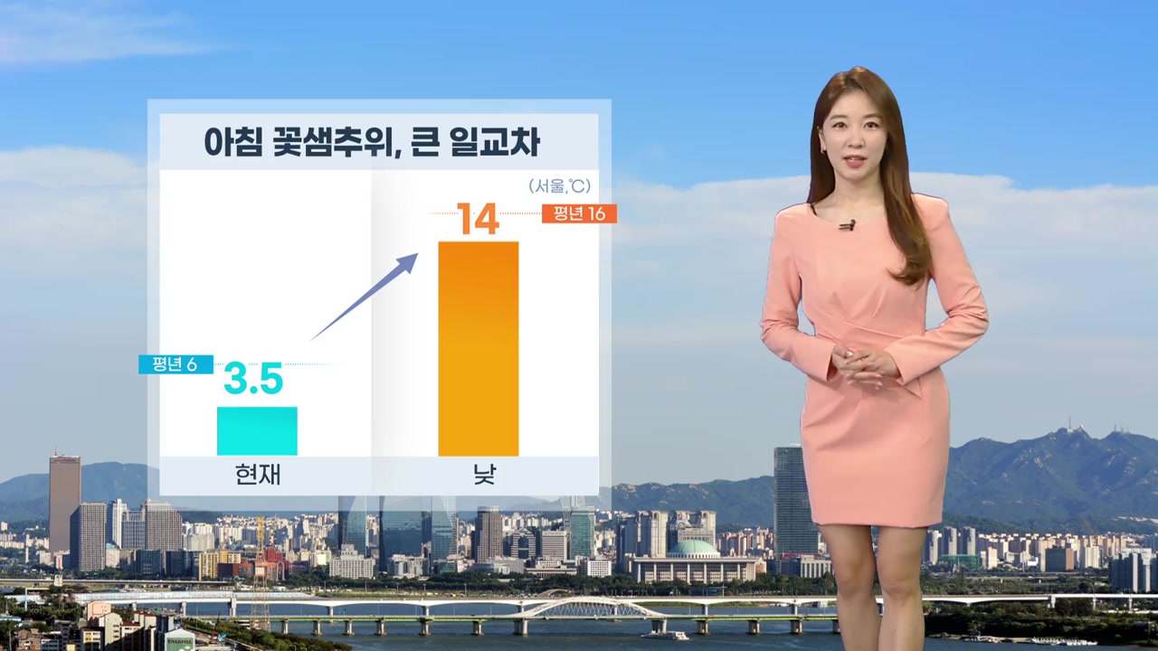 낮기온은 서울이 14도, 청주와 대전 16도, 부산은 18도로 예상됩니다.
