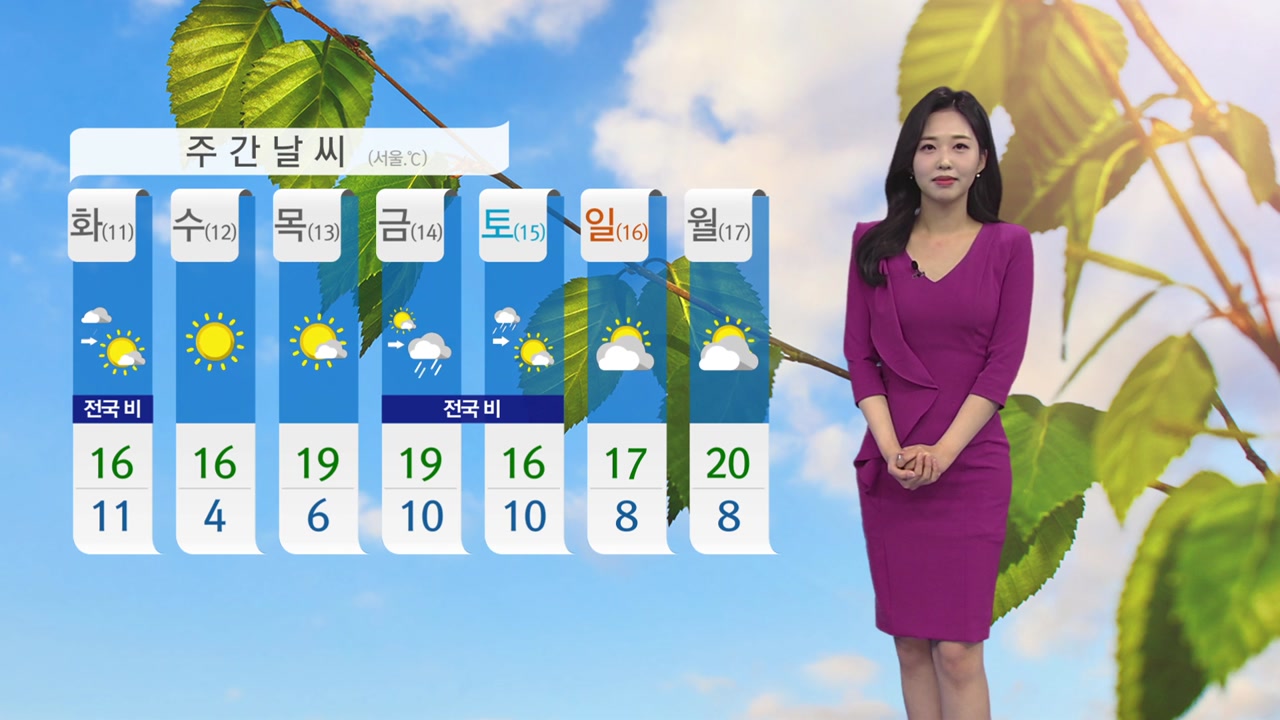 이번 주 이맘때 봄 날씨가 이어지는 가운데 화요일과 주 후반에는 전국에 비가 내릴 전망입니다.