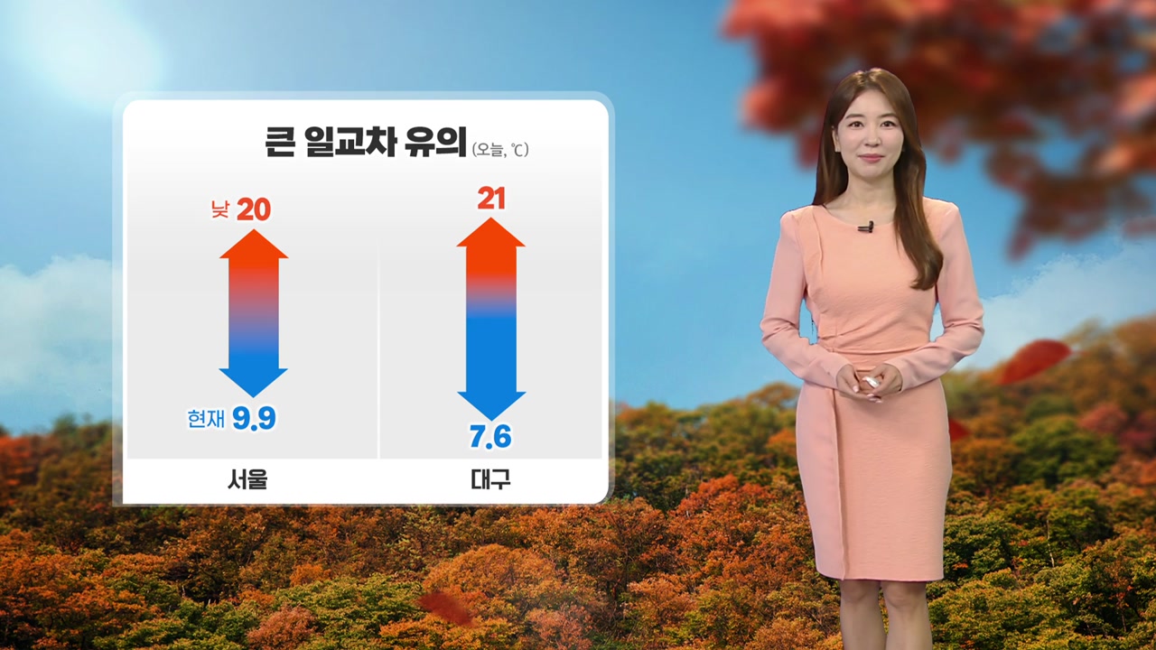 현재 서울 기온 9.9도, 대구 7.6도로 다소 쌀쌀하지만 낮에는 20도까지 올라 선선하겠습니다.