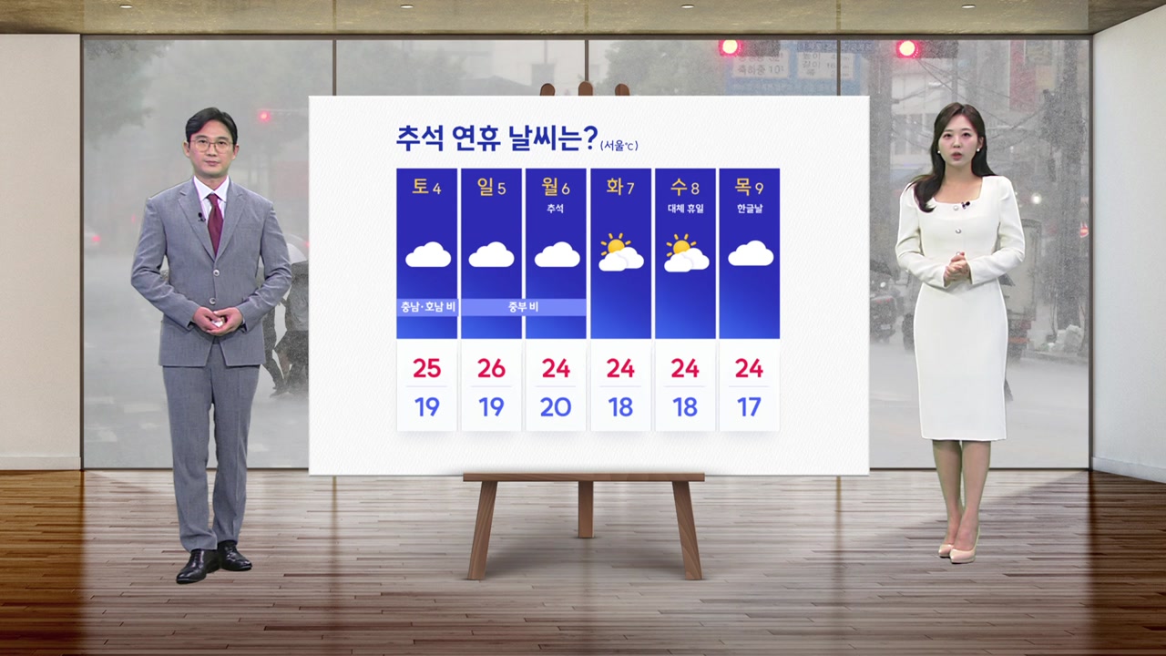 충남과 호남 지역은 모레 저녁까지 오락가락 비가 계속되겠고일요일부터 연휴 후반에는 중부를 중심으로 비가 자주 내리겠습니다.