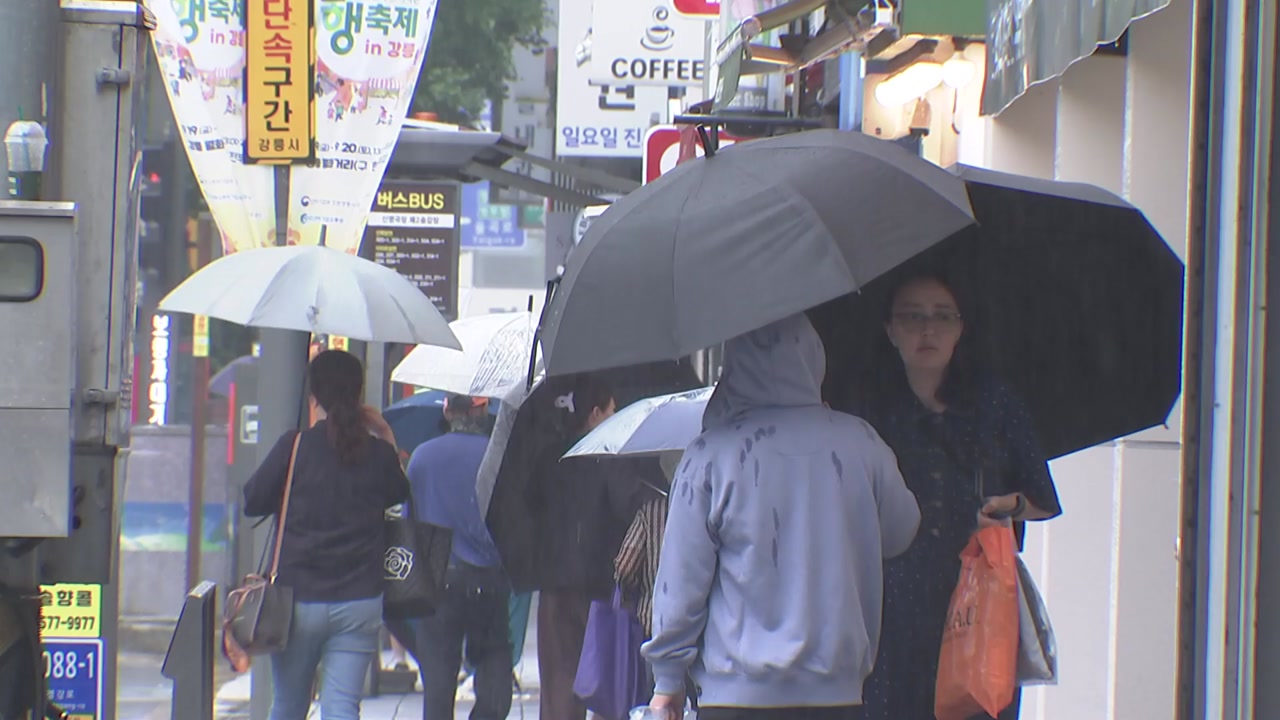 영동에 10에서 40㎜, 경북 동해안에 5에서 20㎜, 그 밖의 동쪽 지역은 5㎜ 안팎의 비가 내리겠습니다.