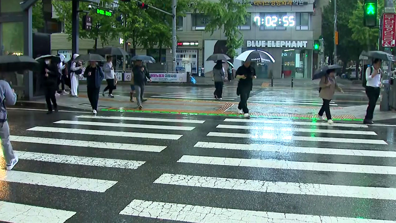 시민들은 우산을 쓰고 젖은 거리를 걸으며 각자의 일상으로 향합니다.