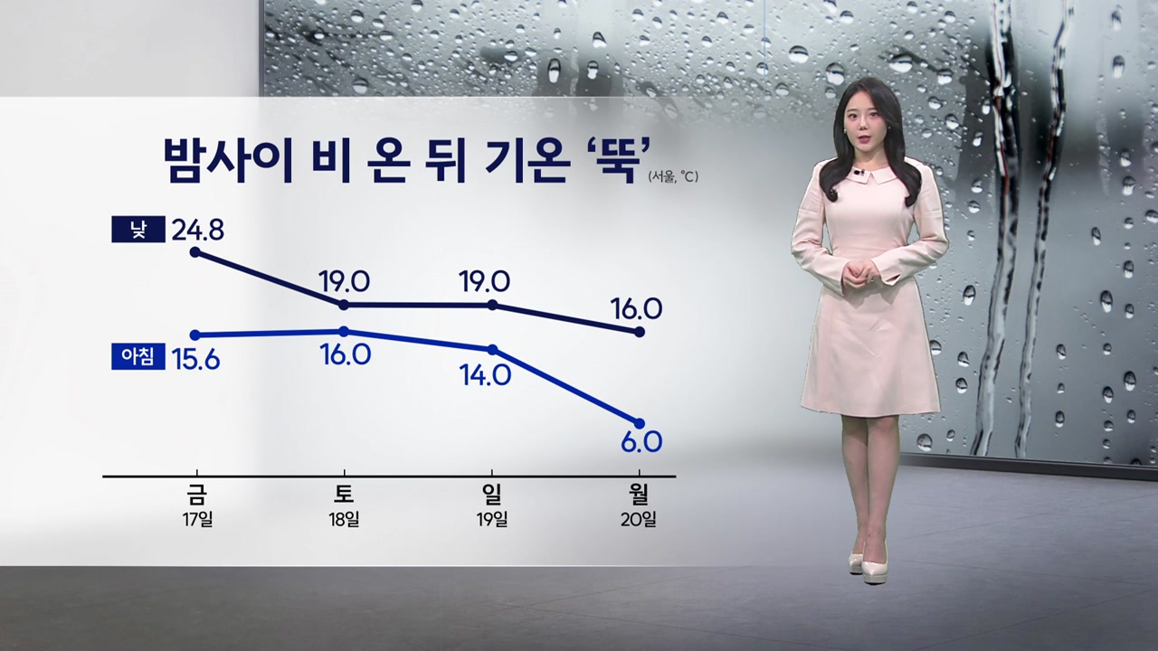 서울 한낮 기온 19도, 광주는 21도로 오늘보다 2~6도가량 내려가겠습니다.
