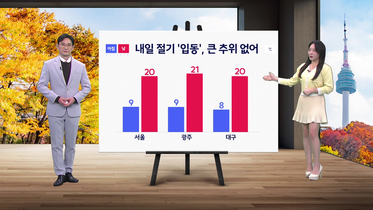우선 내일 서울 아침 기온은 9도, 대구는 8도로 아침에도 큰 추위는 없겠고요.