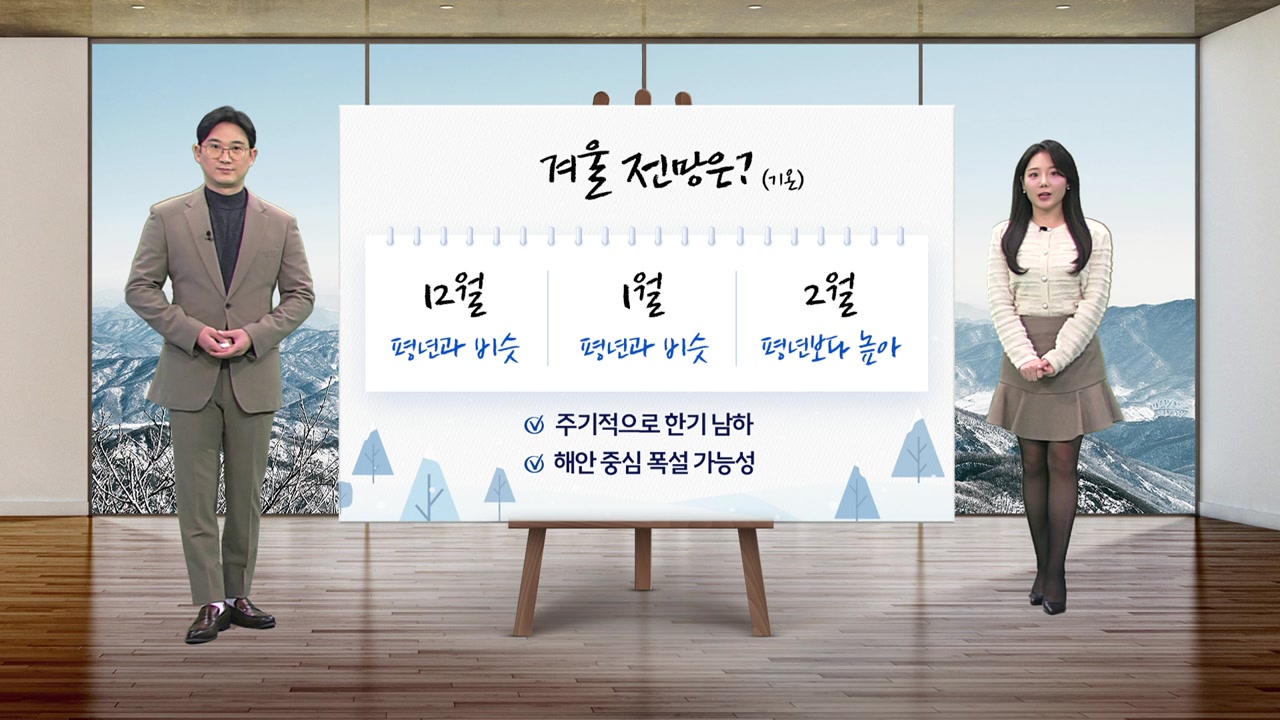 다행히 이번 겨울에는 평년보다 추위가 강하지는 않을 것으로 예상됩니다.
