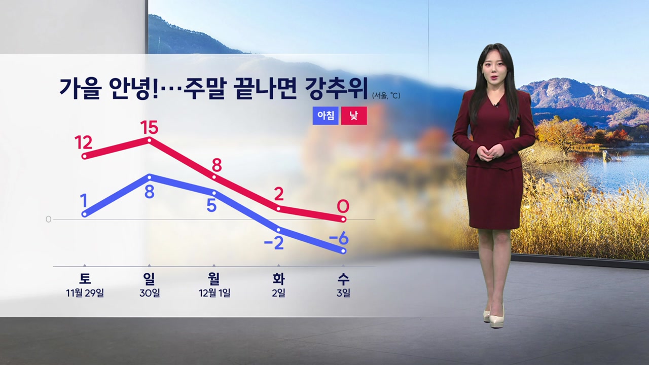하지만 본격적인 겨울이 시작되는 다음 주에는 기온이 내림세를 보이면서 매서운 추위가 찾아올 전망입니다.