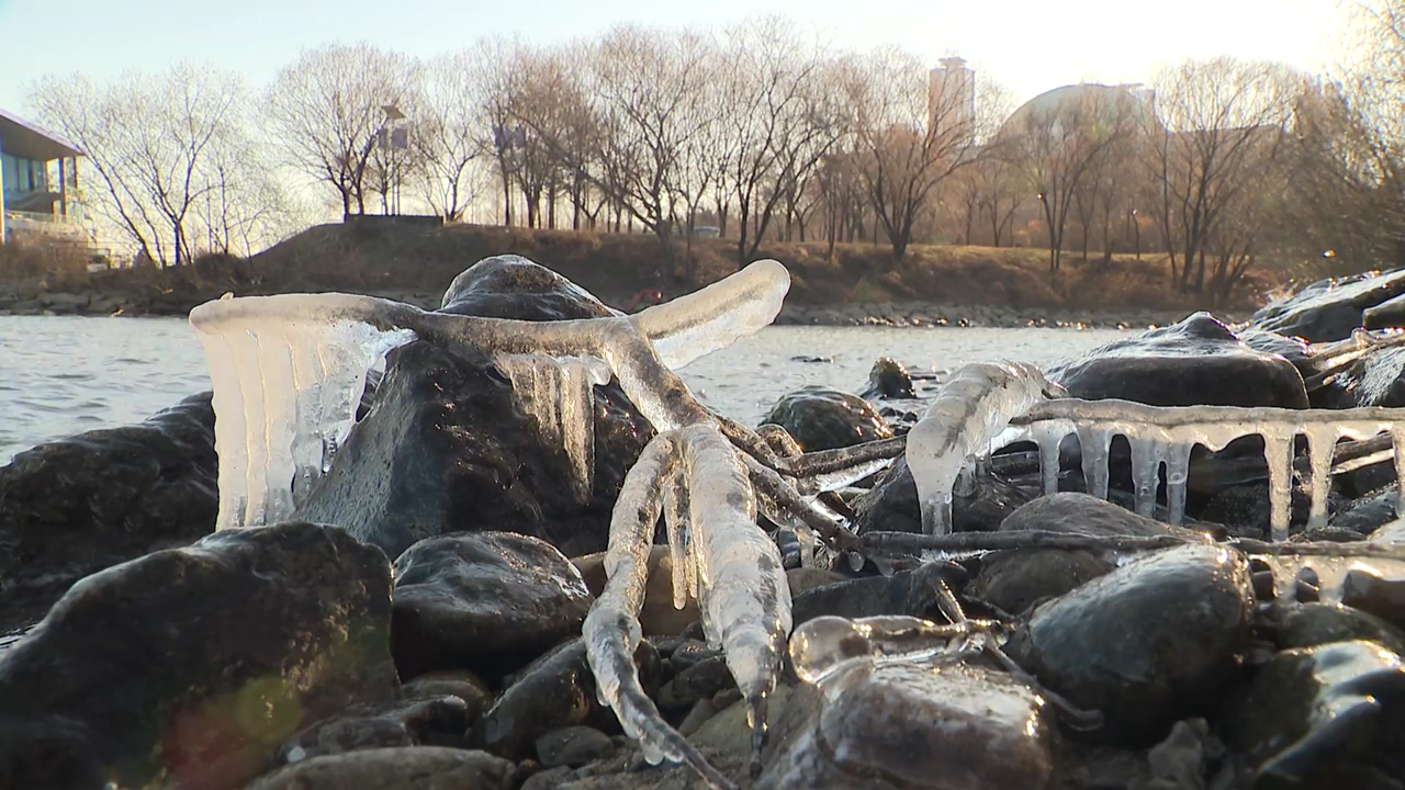 강추위에 한강 가장자리엔 살얼음이 덮였고, 난간과 나뭇가지에는 고드름이 매달렸습니다.