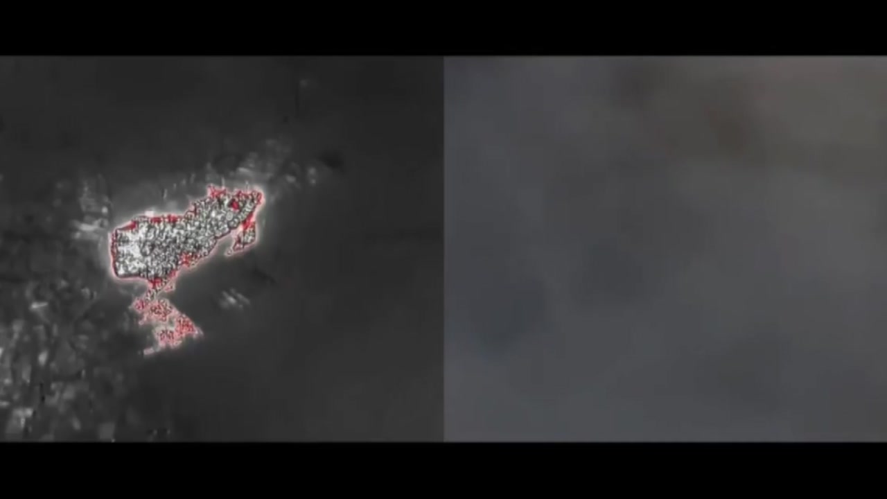 하지만 열화상 영상으로 보니 주택 인근 광범위한 화재 지역이 뚜렷이 나타납니다.
