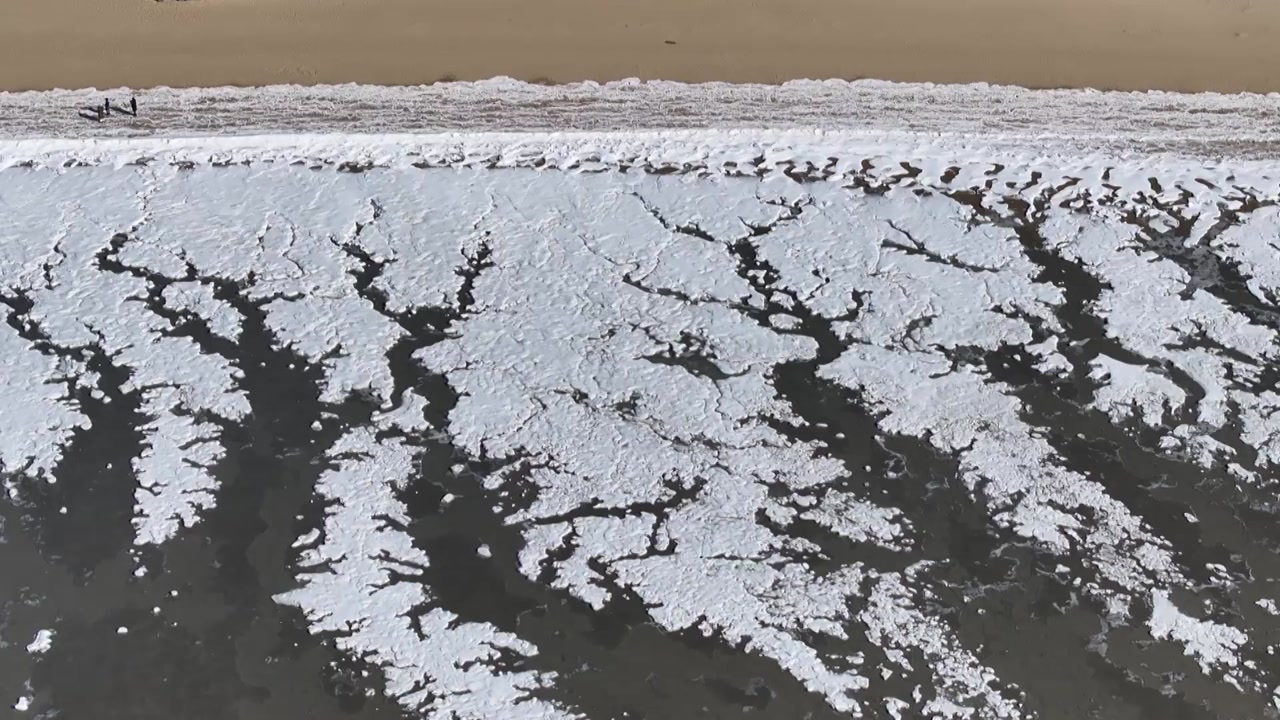 길어지는 강추위로 바다에는 파도 소리가 사라졌고, 해안가에는 이렇게 파도 모양 그대로 얼어붙었습니다.