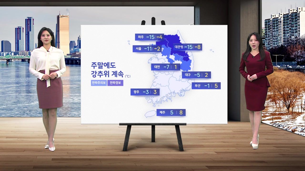 주말인 내일도 대관령의 아침 기온 영하 15도, 서울 영하 11도 등 중북부를 중심으로는 강추위가 이어지겠고요.