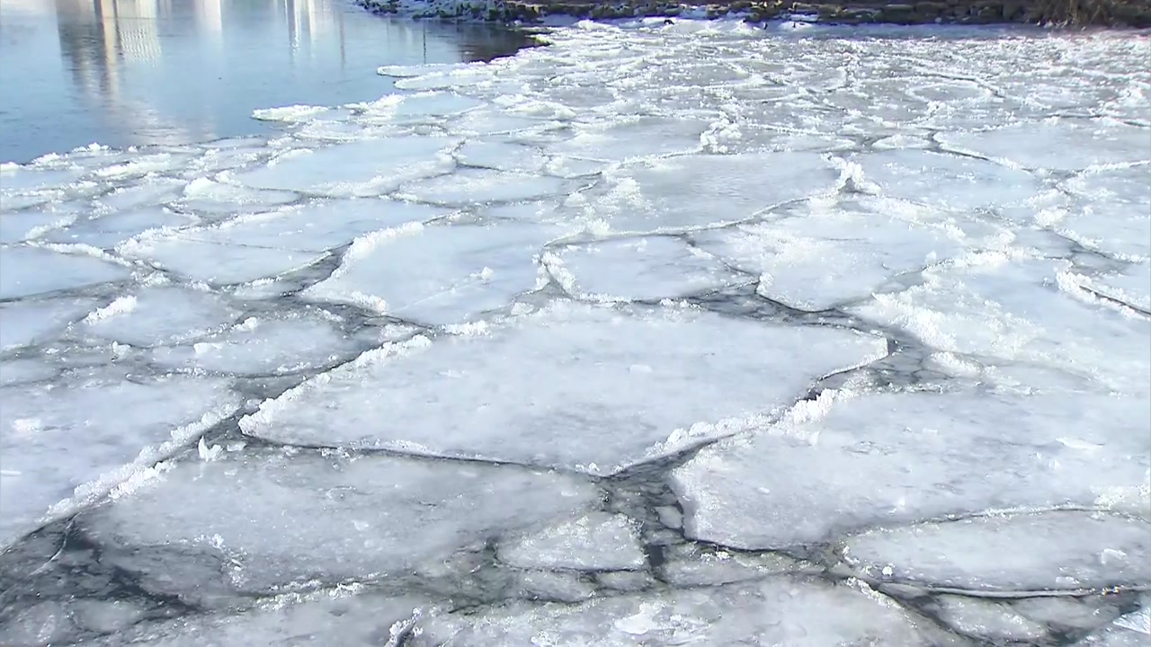 엿새째 이어진 강추위에 한강은 마치 거대한 빙판처럼 변했습니다.