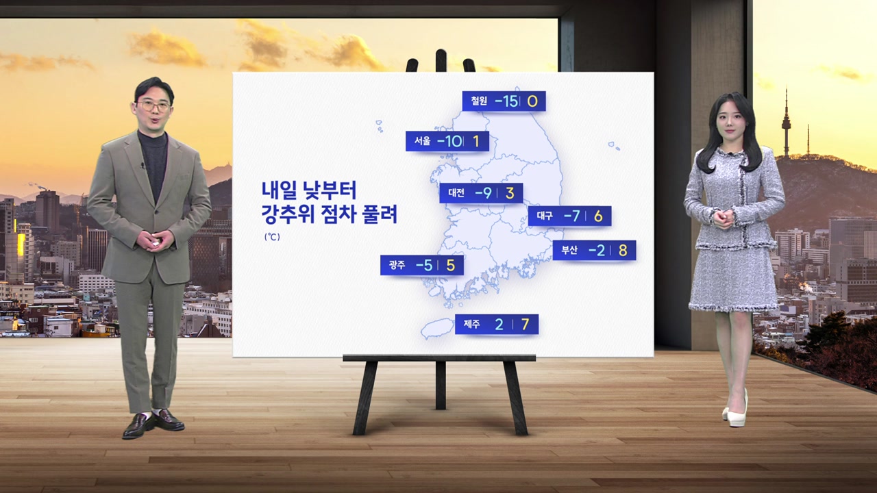 하지만 한낮에는 서울 1도, 광주 5도, 부산 8도까지 오르는 등 오늘보다 3~6도가량 높아지면서 바깥활동하기 한결 수월해지겠습니다.