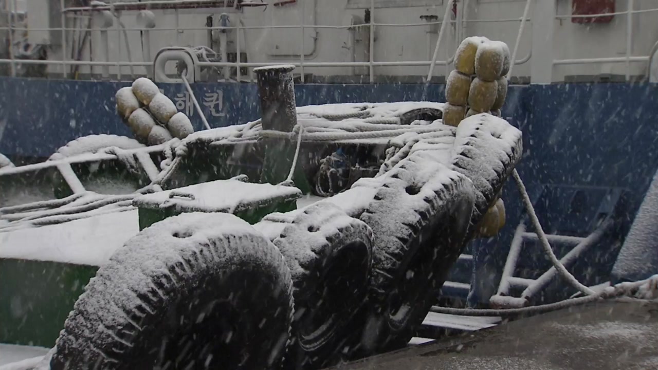 찬 공기는 비교적 따뜻한 바다 위를 지나며 눈구름도 만들었습니다.