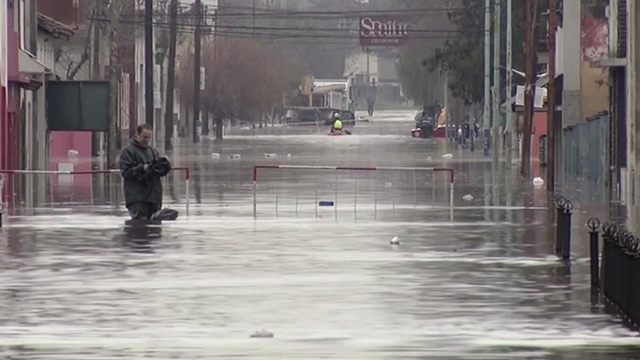 물이 사라진 대지는 쩍쩍 갈라지고, 폭우가 삼킨 마을은 지붕 끝만 간신히 드러납니다.