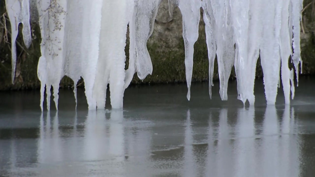 강추위에 폭포가 꽁꽁 얼어붙었다고요.
