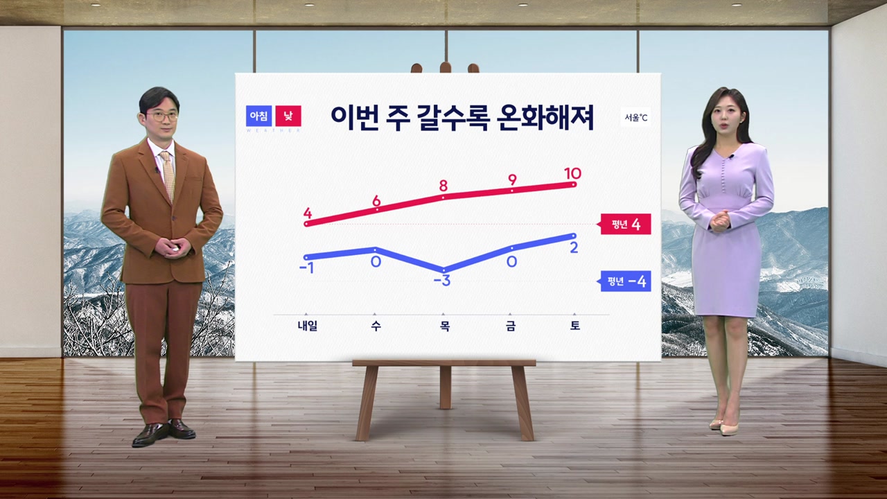 내일은 서울 아침 기온이-1도로 아침에도 추위가 강하지 않겠고이후로도 기온이 오름세를 보이면서 주 후반에는 서울 낮 기온이 10도 안팎까지 크게 올라 온화해지겠습니다.