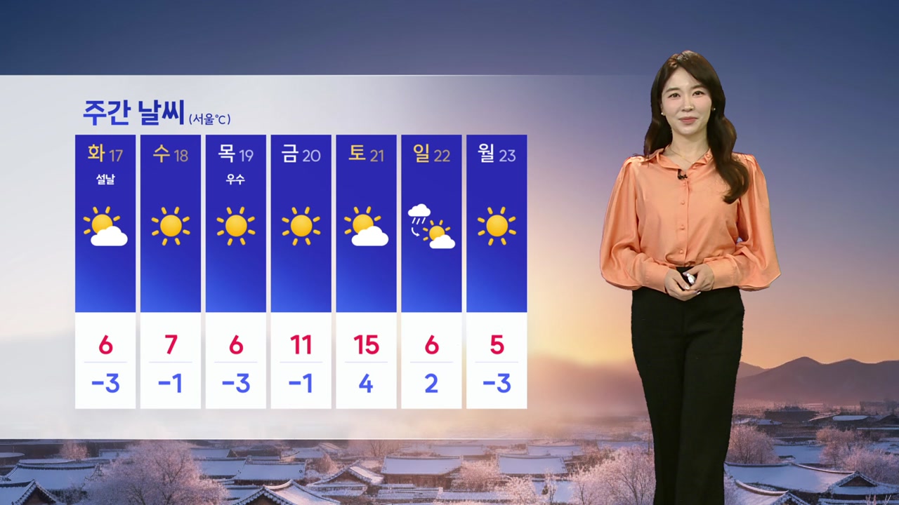 설날인 내일은 맑고 이맘때 겨울 날씨를보일 전망입니다.