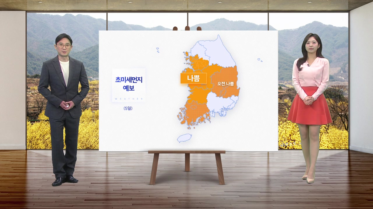 또 차츰 국외 미세먼지가 유입되면서 밤사이 서쪽 지방을 중심으로 초미세먼지 농도가 '나쁨' 수준까지 오르겠습니다. 여기에 하늘도 대체로 흐리겠고, 밤부터는 전국에서 눈비가 시작되겠습니다.