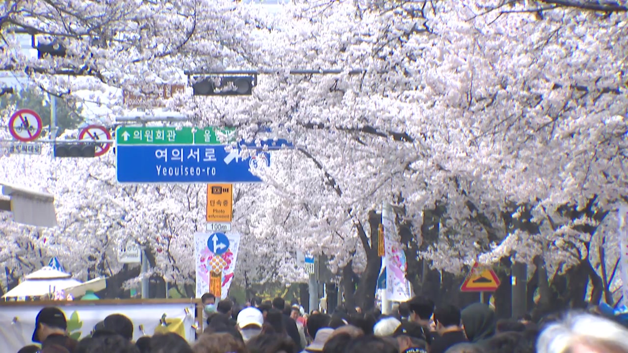 여의도 벚꽃 축제는 이제 막 시작됐지만, 일찍 개화한 탓에 보시는 것처럼 이미 절정을 이뤄 가장 화려한 순간을 지나고 있습니다.