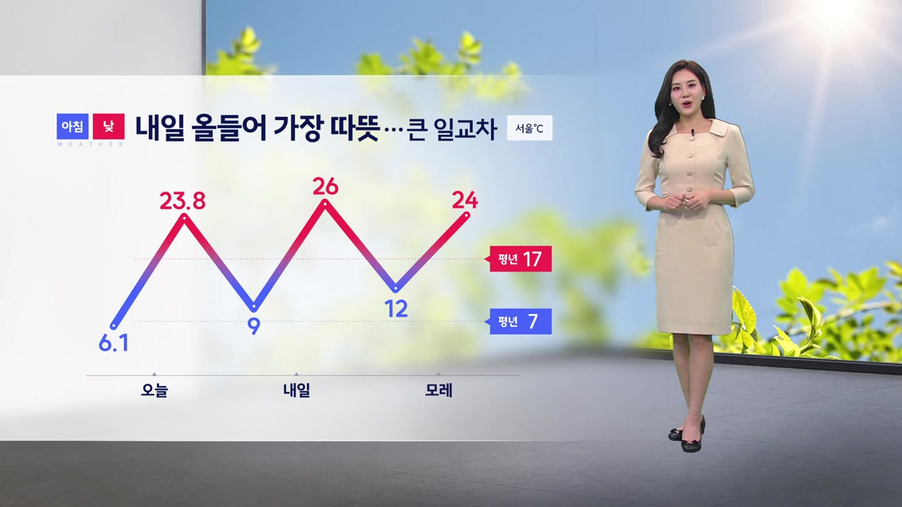 내일 서울 낮 기온 26도까지 오르면서 올봄 들어 가장 따뜻하겠습니다.