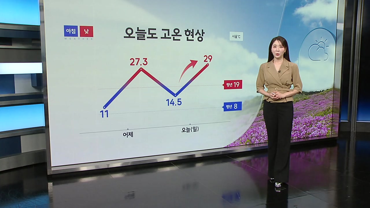 낮 기온 서울 29도, 청주 27도, 대구는 25도로 예상되고 있습니다.