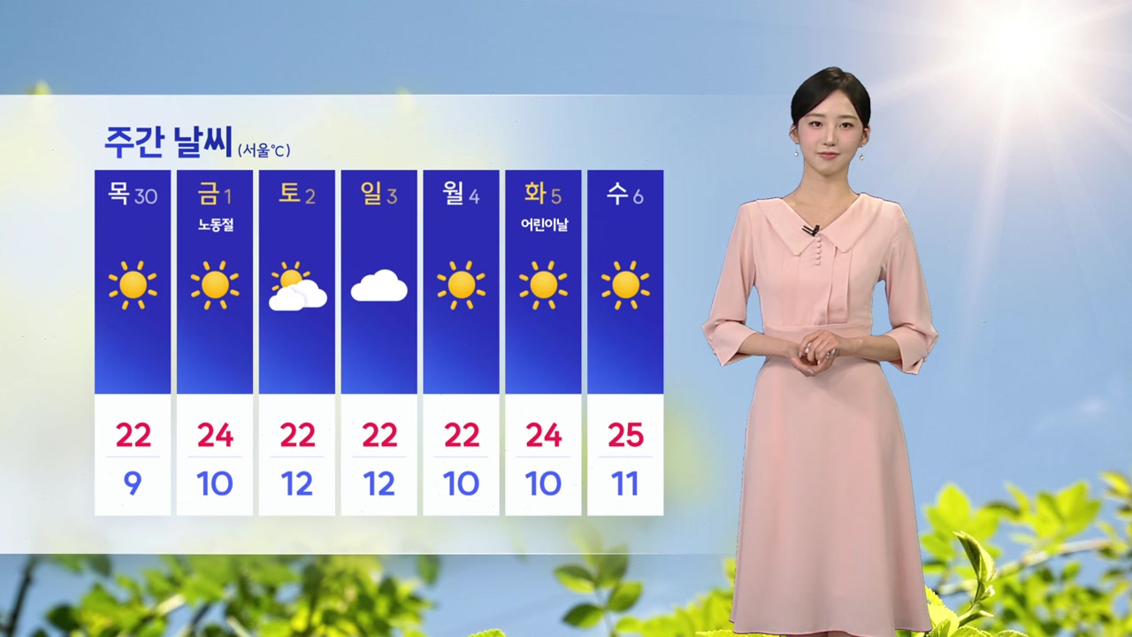 당분간 낮 기온은 오름세를 보이면서주 후반에는 25도 안팎까지 올라서겠습니다.