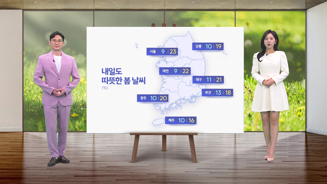 오늘 낮에는 온화함이 감돌며 봄 날씨를 즐길 수 있었습니다. 맞습니다. 내일은 오늘보다 기온이 조금 더 오르겠는데요. 한낮에 서울 23도, 광주 20도, 대구 21도까지 올라서 따뜻하게 느껴지겠습니다.