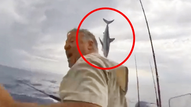 낚싯대를 들고 있던 백발의 남성은 바로 눈앞에 거대한 몸집의 청상아리가 등장하자 겁을 먹기 시작합니다. 보트를 운전하는 다른 남성에게 "빨리 도망가자"고 고래고래 소리를 지르기까지 합니다.