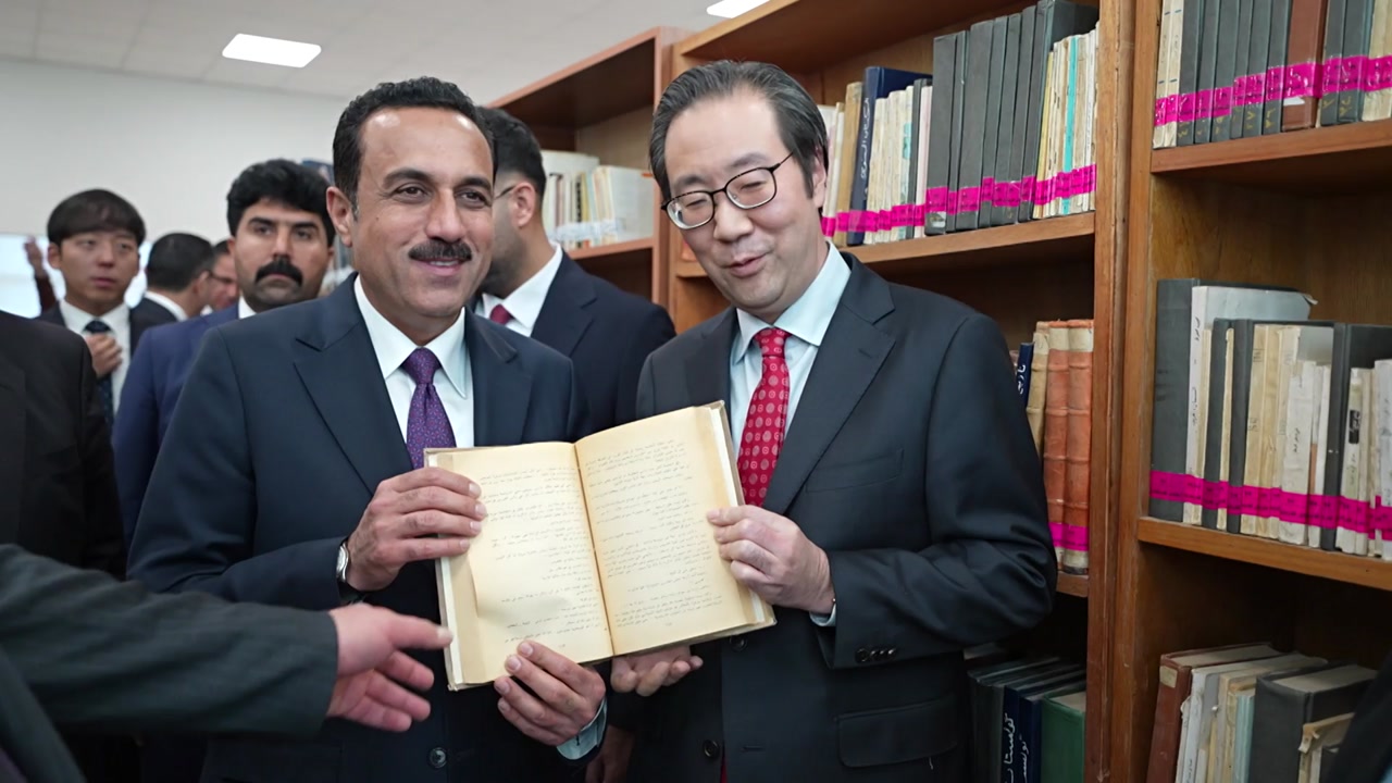 17년 만에 새 단장을 마친 도서관 앞에 한국과 이라크의 주요 인사들이 모여 새로운 출발을 축하하고 있습니다.
