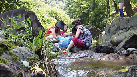 시원한 계곡 물에 발을 담그고 물놀이도 하며 잠시나마 무더위를 잊어 봅니다.