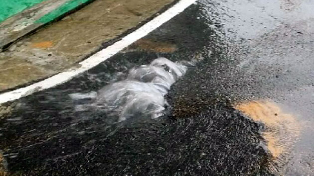 매설된 노후 상수도관이 파열되면서 수압에 의해 아스팔트 바닥 틈새로 물이 뿜어져 나오는 것으로 추정되는 가운데, 지역 상수도사업소는 정확한 원인 파악에 나섰습니다.