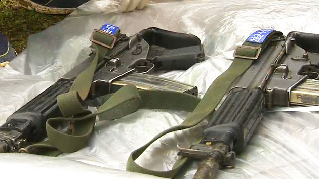 군 당국은 육군보병학교 소속 소위 두 명이 숨진 지동 저수지에서 수색작업을 벌여 K-1 소총 두 정을 찾았습니다.