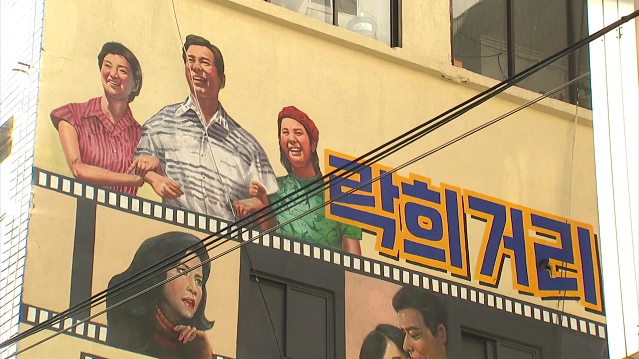 6~70년대 인기를 끌었던 영화 장면을 담은 벽화에 거리 곳곳의 간판은 보통 간판보다 글자가 1.5배 정도 커서 보기도 편합니다.