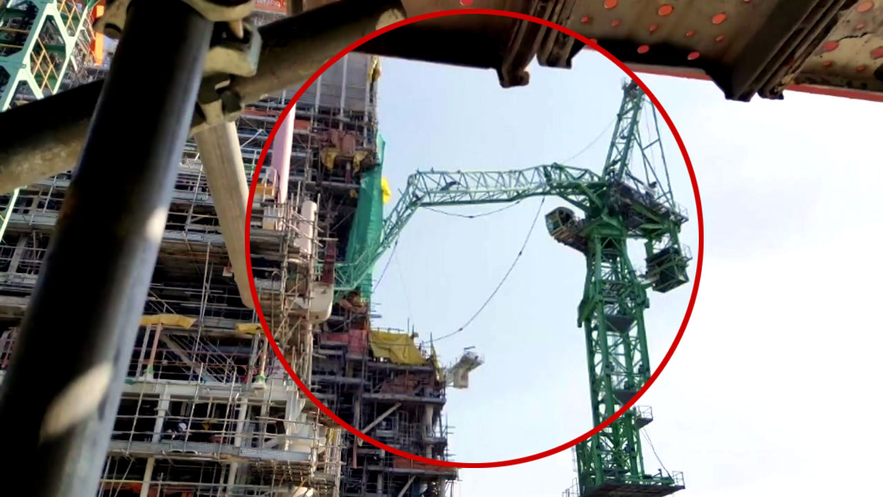 넘어진 타워 크레인은 근로자들이 휴식을 취하는 흡연실을 덮치면서 많은 사상자가 발생한 것으로 전해졌습니다.