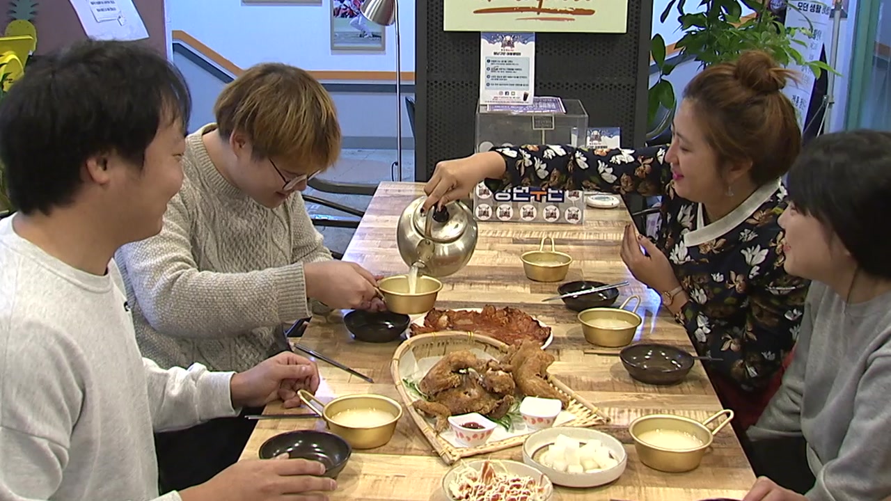 으레 맥주를 함께 마시겠거니 했는데, 술이 막걸리.