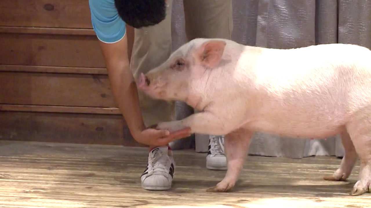 장애물을 통과하며 달리기하는 '애완 돼지'도 있습니다.