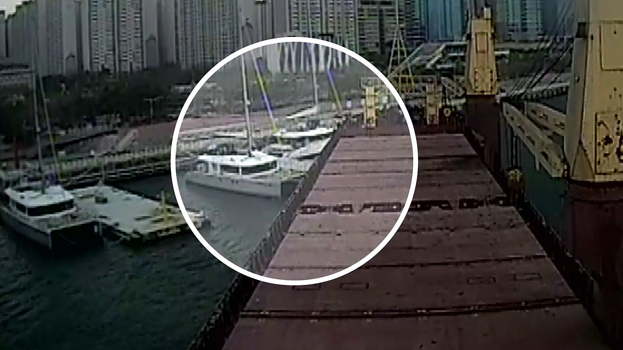 부산 용호부두를 출발하자마자 요트와 충돌하고 조타실에는 욕설과 함께 고성이 오갑니다.