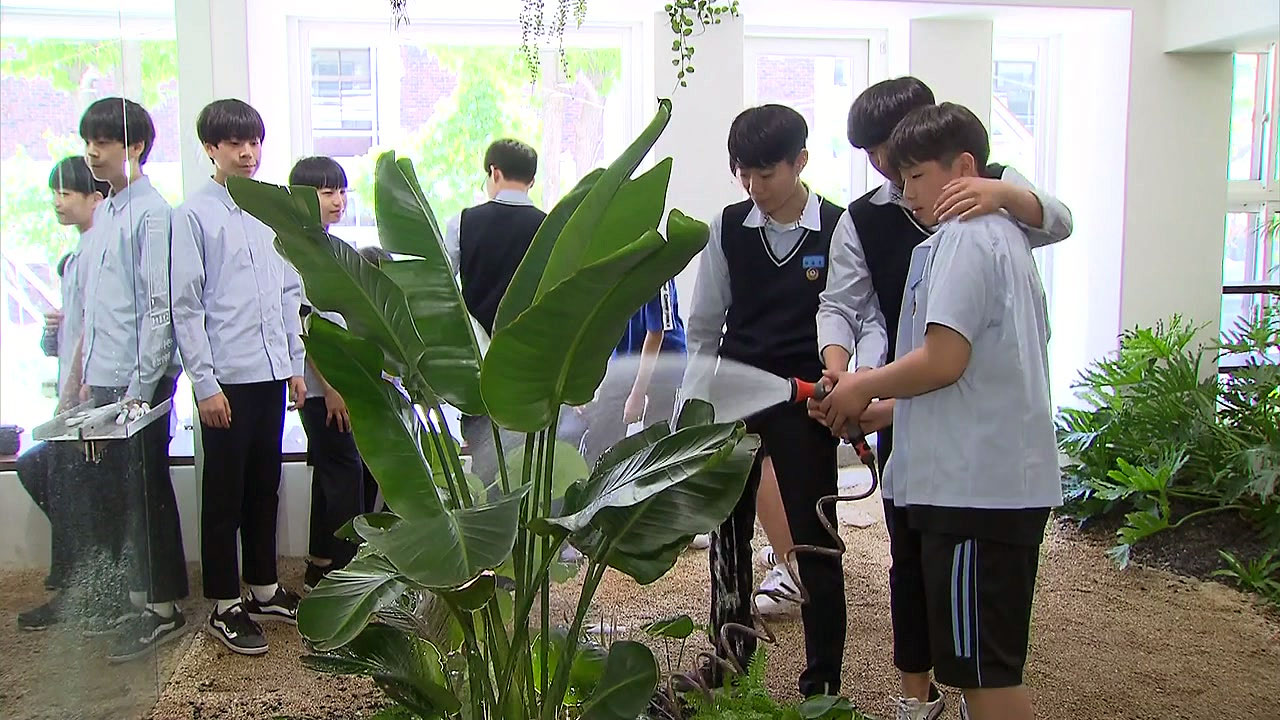 '마음풀' 교실엔 바나나 나무와 야자 등 다양한 식물이 자라는 작은 숲도 조성되어 있습니다.