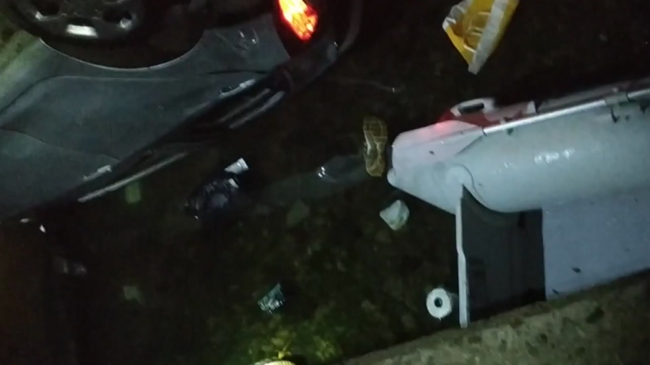 어젯밤 10시 반쯤 부산 기장군 일광면 이동방파제에서 차량이 2.5m 정도 아래로 추락해 전복됐습니다.