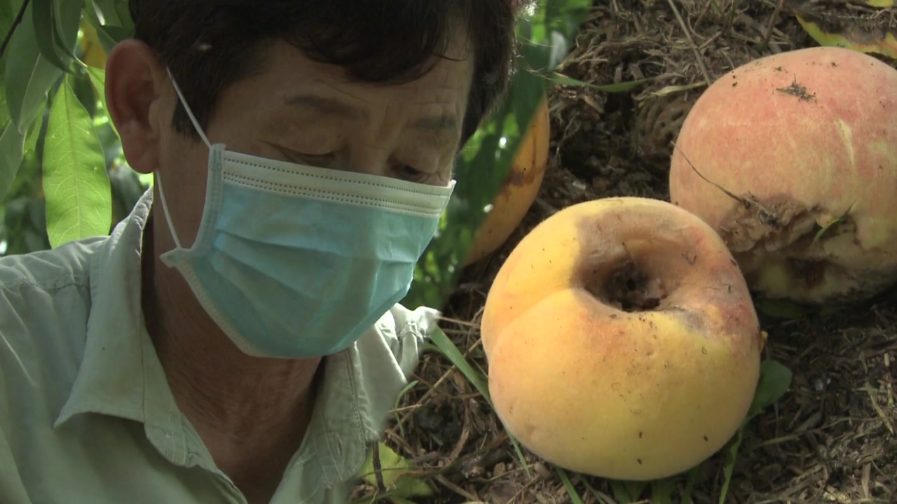 한창 수확 철을 맞은 과일들이 썩어 문드러진 채 바닥에 나뒹굴고 있습니다.